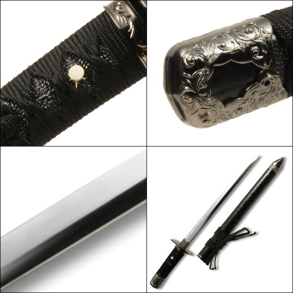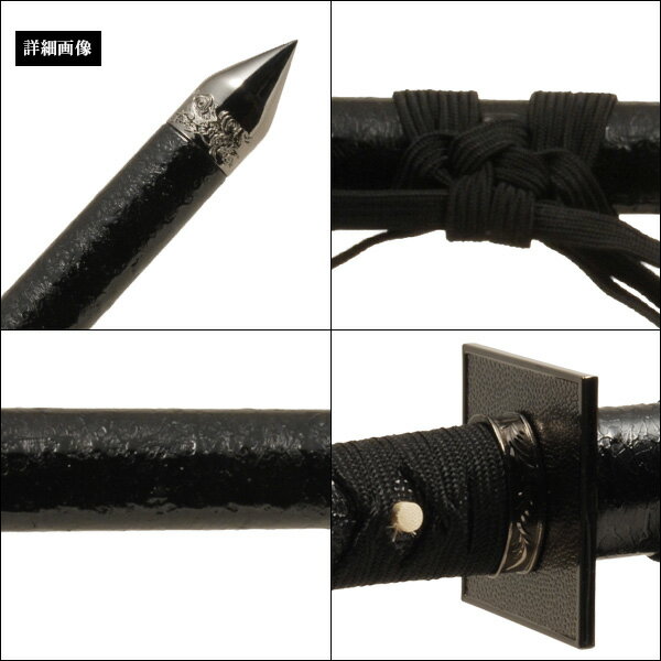 商品説明鞘がプラスチック製なので、取り扱いしやすい仕様となっております 商品名ミニ忍者刀 黒糸仕様 サイズ全長48cm、刃渡28.5cm、柄長12cm 重量総重量450g、鞘払い310g 材質鞘/プラ製、柄/プラ製(黒鮫)、金具/合金、下緒/人絹 黒糸、柄糸/人絹 黒糸 仕様刀身:亜鉛合金 原産国日本 JANコード4560422725050 商品について■こちらの商品は模造刀となり真剣ではありません。