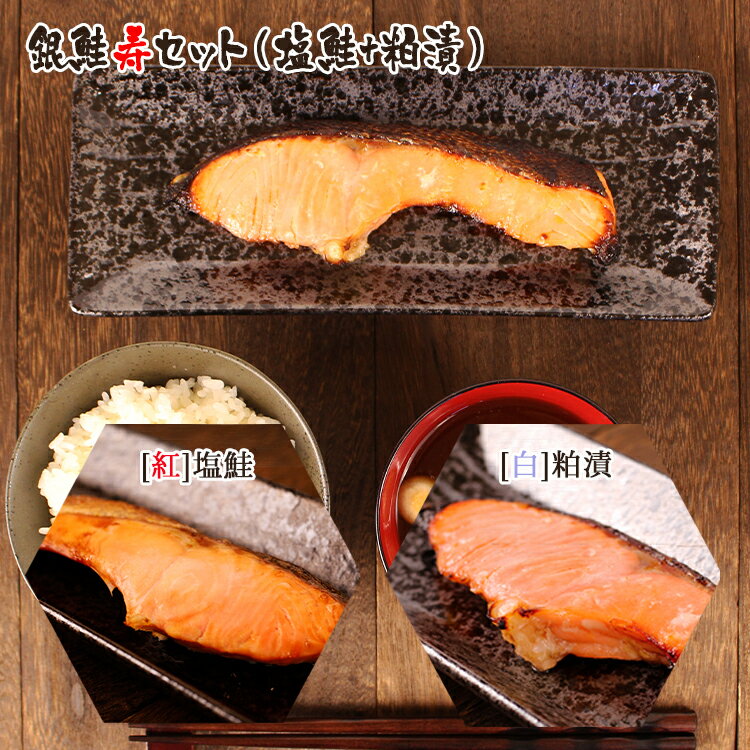 銀鮭寿(紅白)セット 塩銀鮭×4枚 粕漬け×4枚 /送料無料 お歳暮 お祝い お正月 祝膳 ギフト//