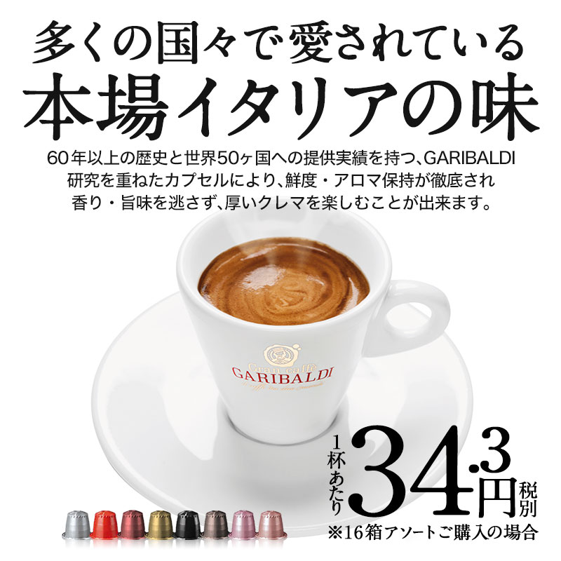 GARIBALDI1個あたり34.3円 イタリア産 ネスプレッソ 互換 カプセルコーヒー16箱(160カプセル)8種アソート各2箱セット NESPRESSO まとめ買い コーヒー豆 【11月25日出荷開始】[送料無料]