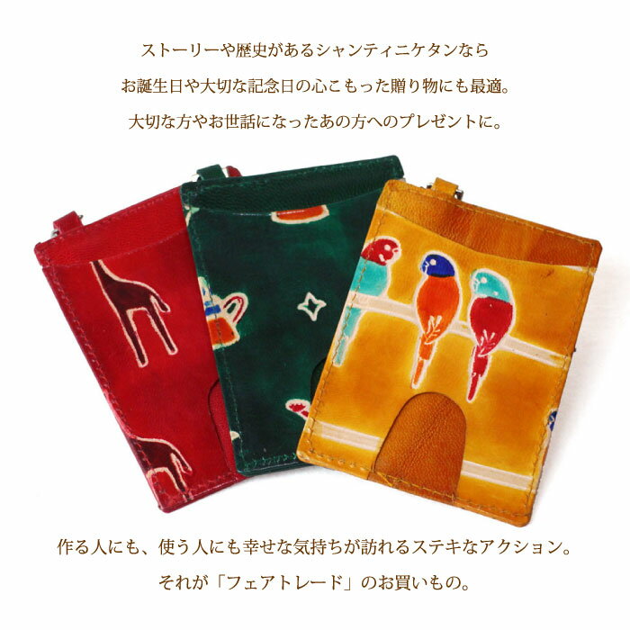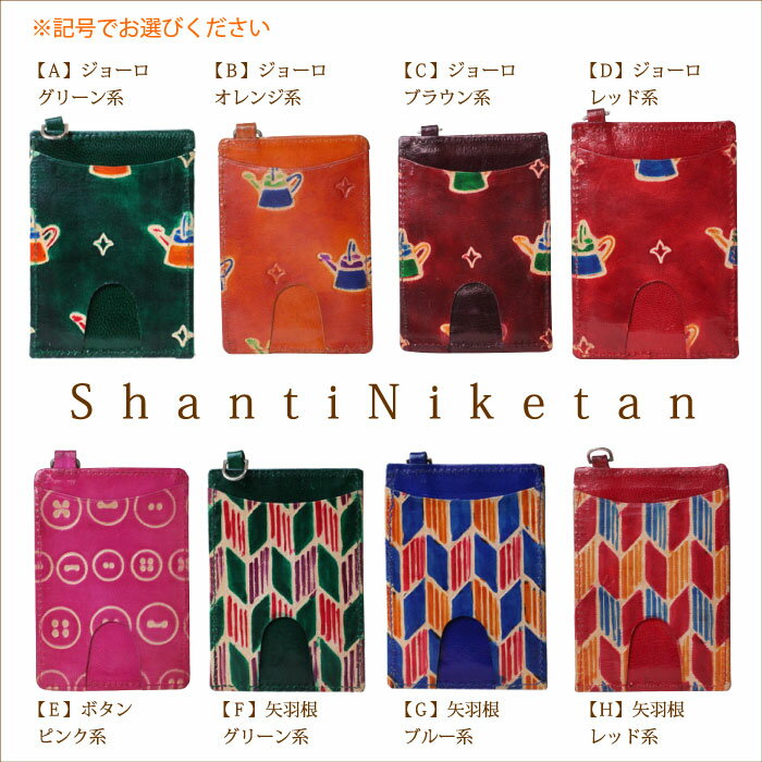 山羊革 定期入れ カードケース【 シャンティニケタン・ストラップ付きパスケース(植物柄・その他の柄) 】 フェアトレード アジアン エスニック ICカードホルダー エトセトラ ボタニカル ドット ジョーロ【あす楽対応】【メール便対応】【ラッピング対応】