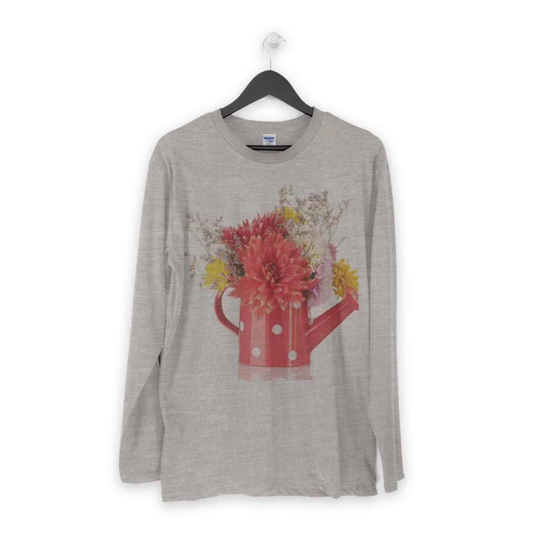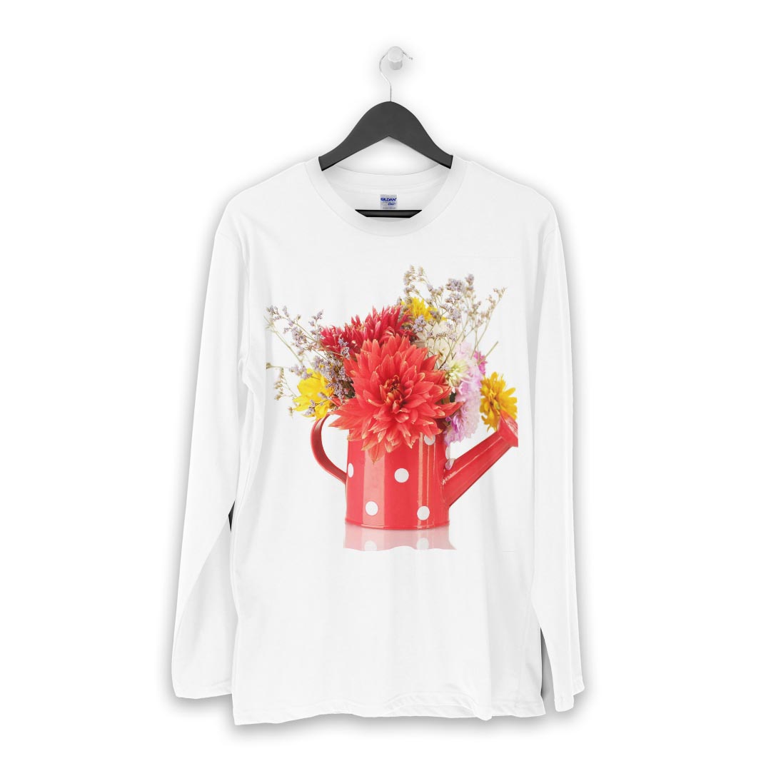 ロング tシャツ メンズ 長袖 ホワイト グレー デザイン XS S M L XL 2XL Tシャツ ティーシャツ T shirt long sleeve 000954 花 じょうろ