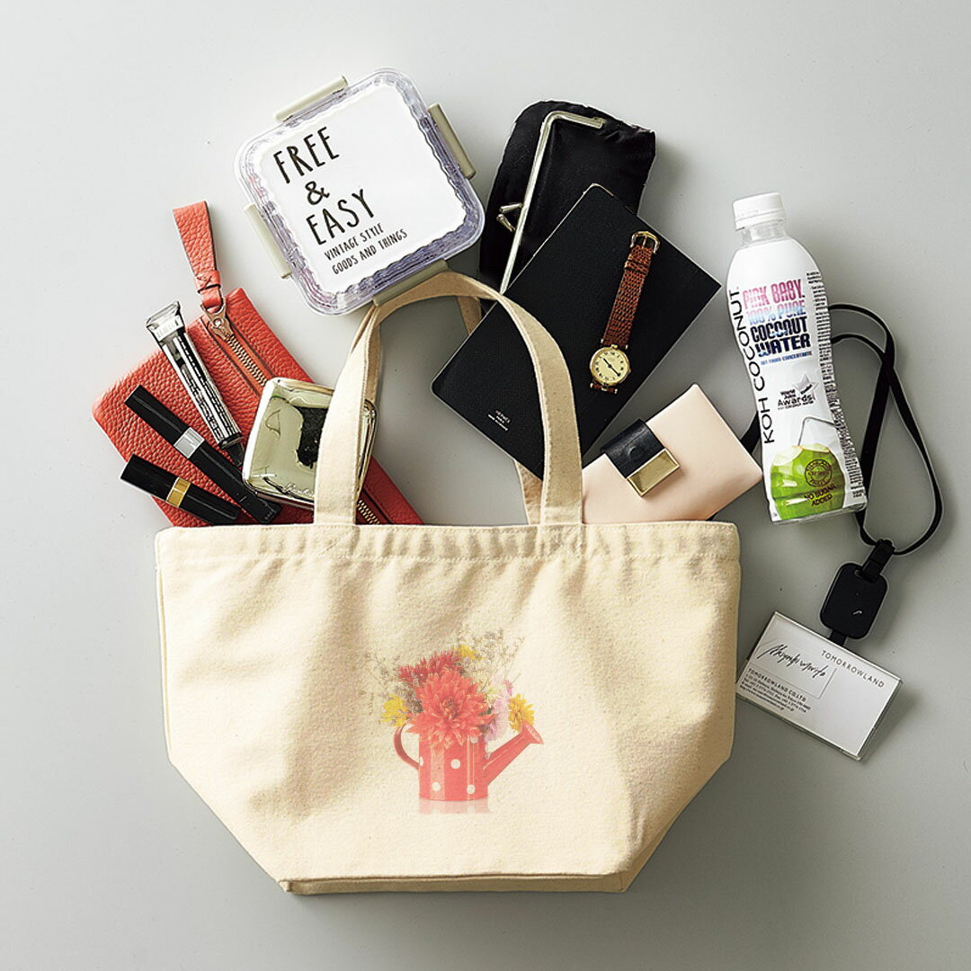 デザインランチバッグ キャンバス デイパック バッグ レディースバッグ トートバッグ ナチュラル 黒 black 000954 花 じょうろ
